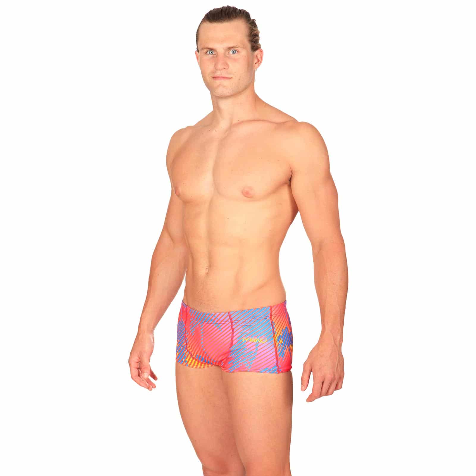 Die SHORTY ist eine Badehose mit Bein im klassischen Schnitt. Sie passt damit so gut wie jedem Mann. Konservativ vom Schnitt, aber nicht vom Design!